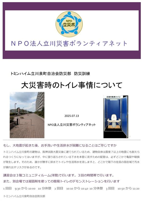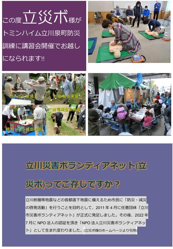 また、立川市災害ボランティアネットワーク主催の防災講座・講演会がございますので、備えをより万全にしたいという方は是非ご参加ください。